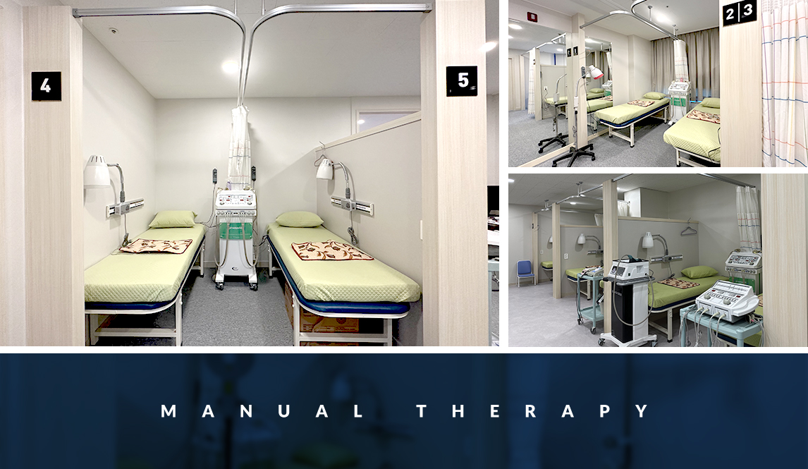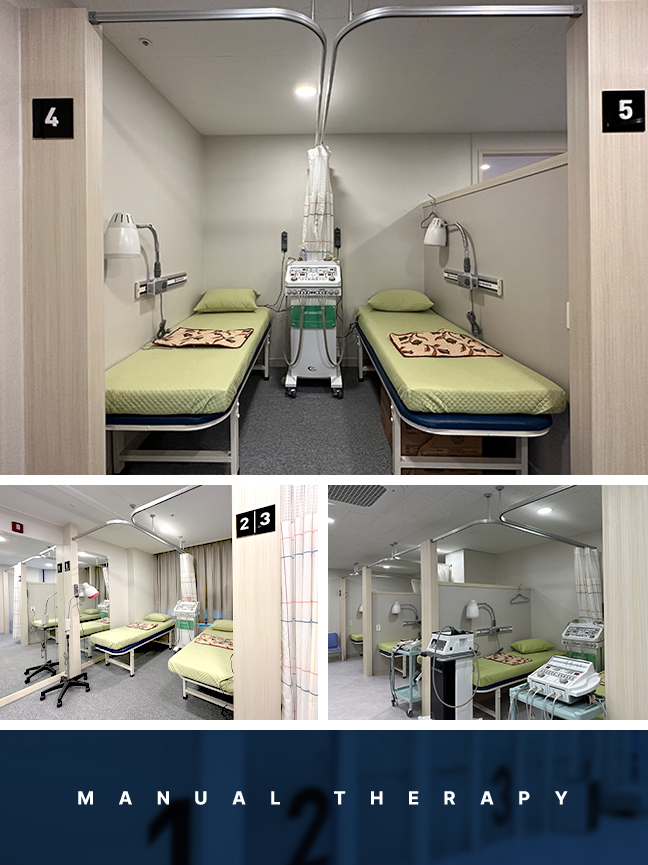 목 통증(목디스크, 협착증), 허리 통증(허리디스크, 협착증, 척추측만증), 등 통증이 있을 시 도수치료를 시행하여 통증 부위, 통증의 원인이 되는 부위를 직접 자극하여 치료합니다.